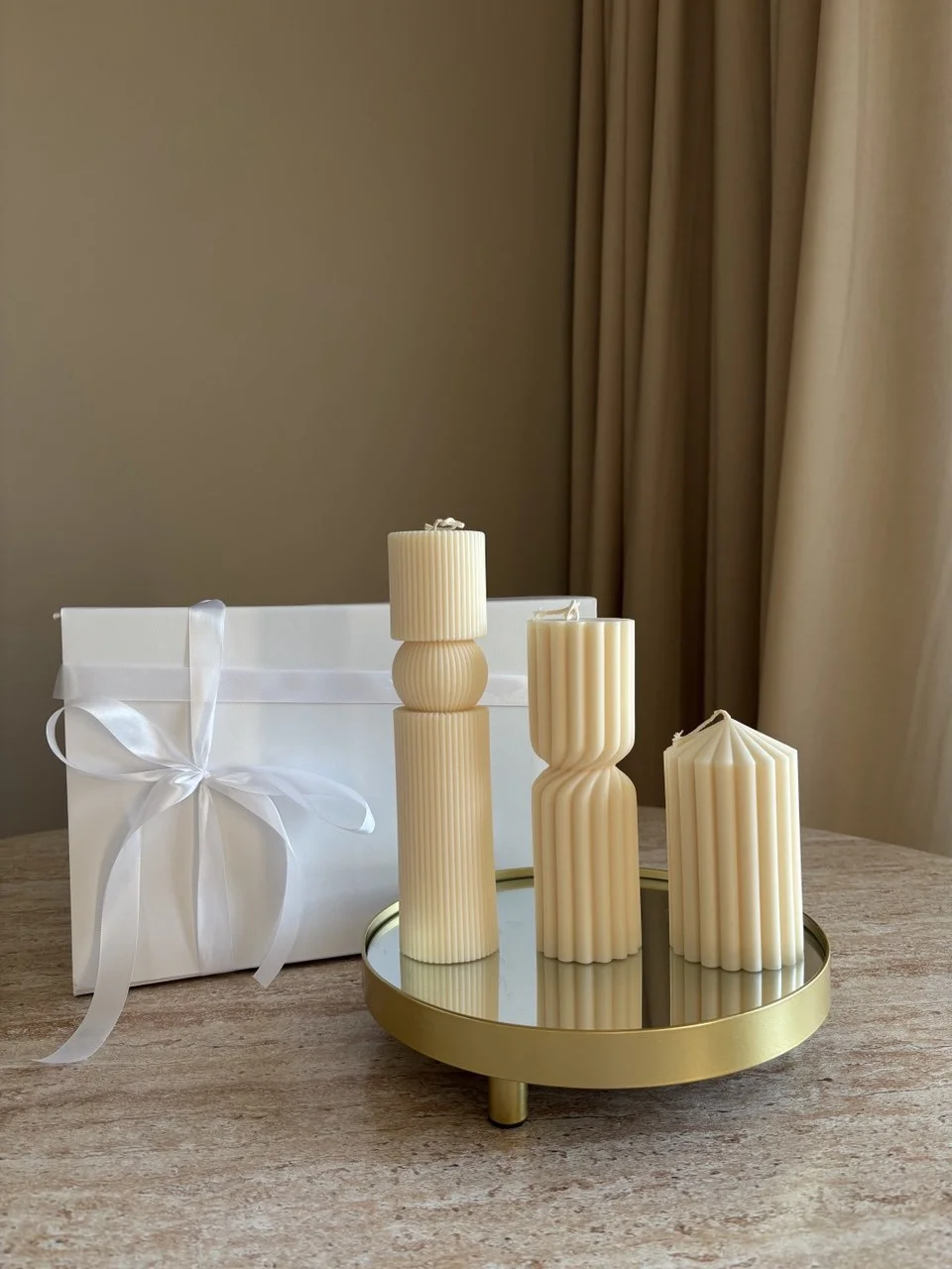 Poznaj nasze luksusowe zestawy prezentowe ze świecami ręcznie robionymi z naturalnego wosku sojowego. Każda świeca powstaje z dbałością o detal, ma unikatowy dekoracyjny kształt i wnosi do wnętrza ciepło oraz wyjątkowy klimat.