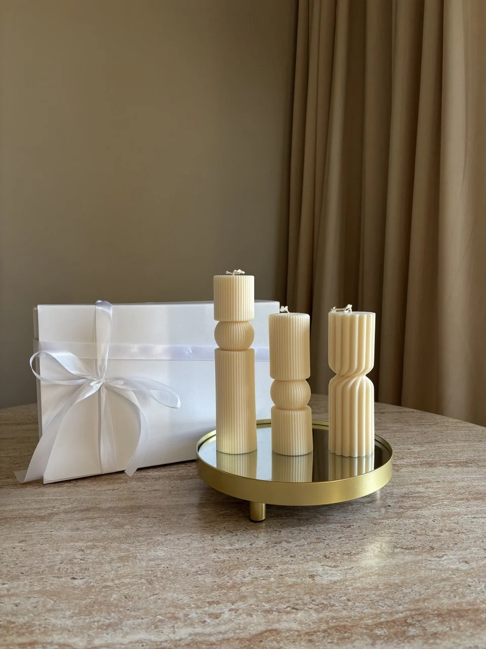 Poznaj nasze luksusowe zestawy prezentowe ze świecami ręcznie robionymi z naturalnego wosku sojowego. Każda świeca powstaje z dbałością o detal, ma unikatowy dekoracyjny kształt i wnosi do wnętrza ciepło oraz wyjątkowy klimat.
