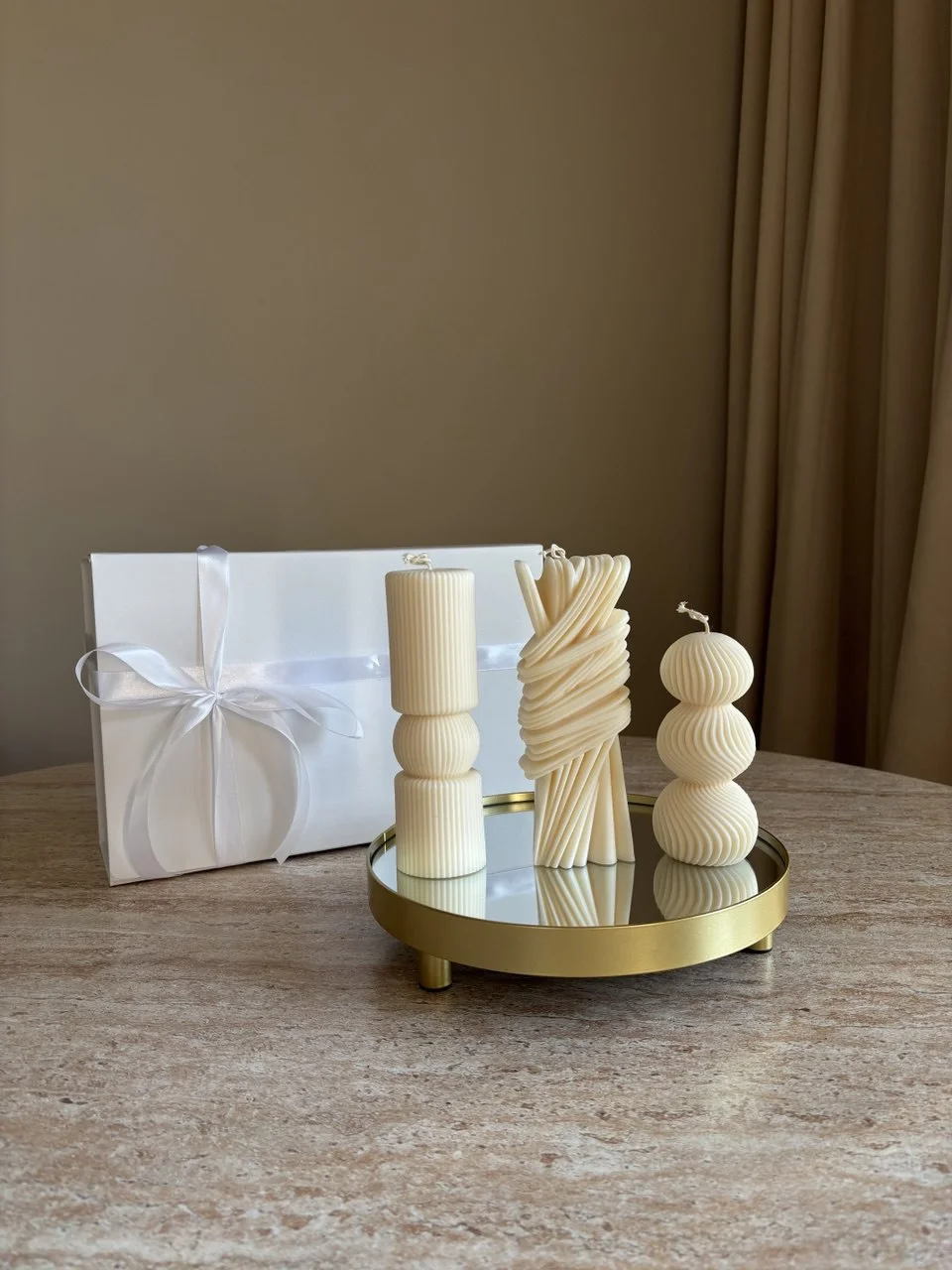 Poznaj nasze luksusowe zestawy prezentowe ze świecami ręcznie robionymi z naturalnego wosku sojowego. Każda świeca powstaje z dbałością o detal, ma unikatowy dekoracyjny kształt i wnosi do wnętrza ciepło oraz wyjątkowy klimat.