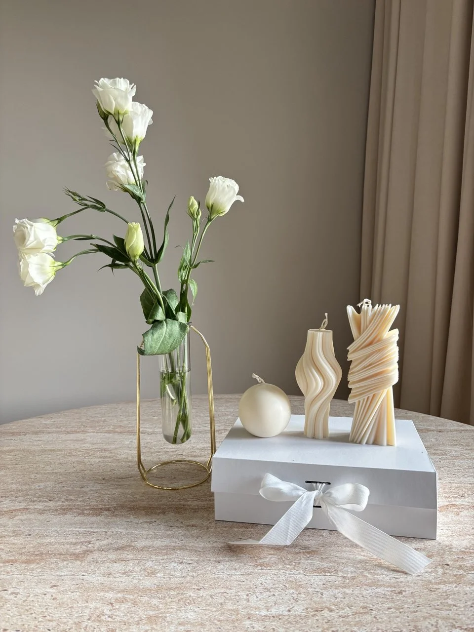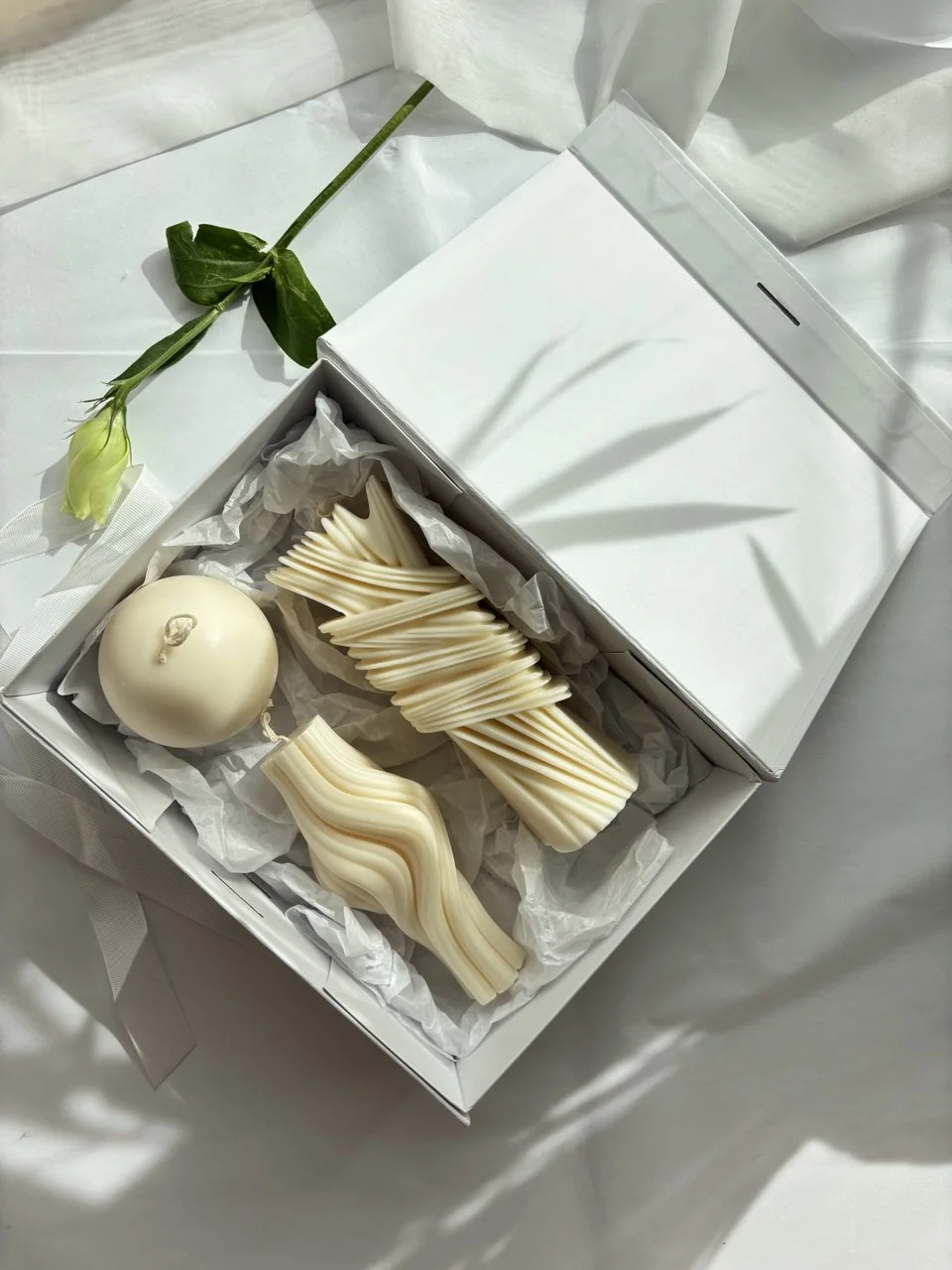 Poznaj nasze luksusowe zestawy prezentowe ze świecami ręcznie robionymi z naturalnego wosku sojowego. Każda świeca powstaje z dbałością o detal, ma unikatowy dekoracyjny kształt i wnosi do wnętrza ciepło oraz wyjątkowy klimat.