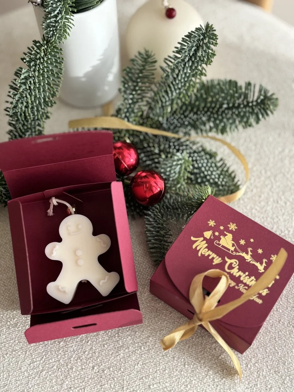 Stwórz magiczną atmosferę świąt dzięki naszym wyjątkowym zestawom z ręcznie robionymi świecami z naturalnego wosku sojowego. Każdy komplet znajduje się w eleganckim, świątecznym pudełku, idealnym na prezent dla bliskich lub jako dodatek do świątecznego wystroju.